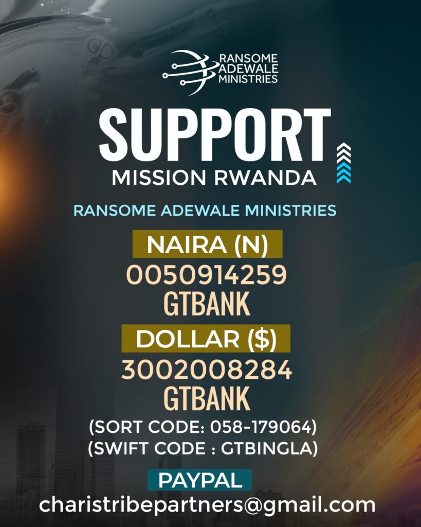Ransome Adewale Ministries is a teaching and apostolic ministry with the mandate to herald the Lordship of Christ Jesus and the ministry of the Holy Spirit to all the nations of the earth.